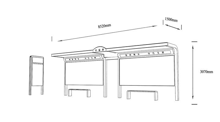 產(chǎn)品外觀 / PRODUCT DETAILS 產(chǎn)品信息 / PRODUCT INFO 【產(chǎn)品名稱】:城市品位候車亭PW3 【產(chǎn)品系列】:城市品位候車亭 【產(chǎn)品型號(hào)】:PW3 【產(chǎn)品規(guī)格】:長(zhǎng)10800mm 寬1700mm 高2900mm 【產(chǎn)品材質(zhì)】:熱鍍鋅鋼板 【使用年限】:10-15年 【詳情致電】:181-5189-0417、157-5170-8886 備注:產(chǎn)品可根據(jù)用戶需求選用材質(zhì)、顏色及配件,個(gè)性化定制。 1、表面采用靜電噴塑(氟碳烤漆/搪瓷處理) 2、頂棚采用100*100*1.5mm、100*150*2mm鍍鋅管,3mm鍍鋅板激光切割件、1.5mm鍍鋅板焊接骨架,鋪1mm鍍鋅板(10mm陽光板) 3、立柱采用150*150*3mm鍍鋅管 4、箱體采用1.5mm鍍鋅板折彎焊接成型,門框采用全玻鋁合金型材,視窗采用6mm鋼化玻璃 5、照明電器采用LED燈粒 產(chǎn)品尺寸 / PRODUCT SIZE 關(guān)于輝盛 / 為社會(huì)分擔(dān)責(zé)任,為客戶創(chuàng)造價(jià)值 宿遷輝盛廣告設(shè)備有限公司是一家集設(shè)計(jì)、研發(fā)、生產(chǎn)為一體的城市公共設(shè)施生產(chǎn)型企業(yè)。主要產(chǎn)品有:候車公交亭、公交站臺(tái)、閱報(bào)欄、路名牌、垃圾箱、燈箱等市政設(shè)施系列產(chǎn)品和工程配套設(shè)施系列產(chǎn)品,現(xiàn)有高級(jí)技師30多人,高級(jí)職稱設(shè)計(jì)人員10人,是一家具有自主開發(fā)和設(shè)計(jì)能力的以公交亭、智能公交為主導(dǎo)的綜合性城市公共設(shè)施制造企業(yè)。為了進(jìn)一步改善生產(chǎn)工藝,提高產(chǎn)品質(zhì)量,公司引進(jìn)了先進(jìn)生產(chǎn)設(shè)備,包括立臥式加工中心,工業(yè)涂裝流水線,CNC車床,線切割機(jī),大型數(shù)控板機(jī),數(shù)控折邊機(jī),數(shù)控沖孔機(jī)床,大型折彎?rùn)C(jī)等。公司還專門成立了產(chǎn)品研發(fā)部門,現(xiàn)每年自主開發(fā)或應(yīng)客戶要求設(shè)計(jì)推出多款新產(chǎn)品。 榮譽(yù)資質(zhì) / ENTERPRISE HONOR