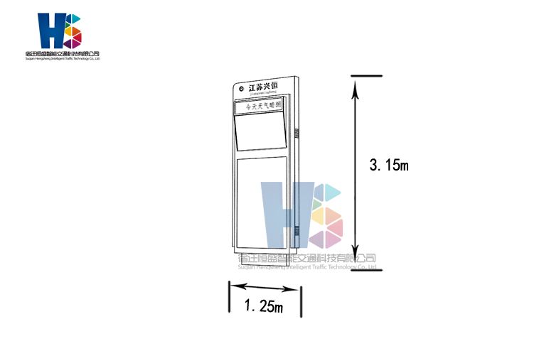 產(chǎn)品外觀 / PRODUCT DETAILS 產(chǎn)品信息 / PRODUCT INFO 【產(chǎn)品名稱】:電子站牌ZP3-1 【產(chǎn)品系列】:電子站牌 【產(chǎn)品型號】:ZP3-1 【產(chǎn)品規(guī)格】:長1250mm 高3150mm 【產(chǎn)品材質(zhì)】:熱鍍鋅鋼板 【使用年限】:10-15年 【詳情致電】:181-5189-0417、157-5170-8886 備注:產(chǎn)品可根據(jù)用戶需求選用材質(zhì)、顏色及配件,個性化定制。 1、表面采用靜電噴塑(氟碳烤漆/搪瓷處理) 2、頂棚采用100*100*1.5mm、100*150*2mm鍍鋅管,3mm鍍鋅板激光切割件、1.5mm鍍鋅板焊接骨架,鋪1mm鍍鋅板(10mm陽光板) 3、立柱采用150*150*3mm鍍鋅管 4、箱體采用1.5mm鍍鋅板折彎焊接成型,門框采用全玻鋁合金型材,視窗采用6mm鋼化玻璃 5、照明電器采用LED燈粒 產(chǎn)品尺寸 / PRODUCT SIZE 關(guān)于輝盛 / 為社會分擔責任,為客戶創(chuàng)造價值 宿遷輝盛廣告設(shè)備有限公司是一家集設(shè)計、研發(fā)、生產(chǎn)為一體的城市公共設(shè)施生產(chǎn)型企業(yè)。主要產(chǎn)品有:候車公交亭、公交站臺、閱報欄、路名牌、垃圾箱、燈箱等市政設(shè)施系列產(chǎn)品和工程配套設(shè)施系列產(chǎn)品,現(xiàn)有高級技師30多人,高級職稱設(shè)計人員10人,是一家具有自主開發(fā)和設(shè)計能力的以公交亭、智能公交為主導的綜合性城市公共設(shè)施制造企業(yè)。為了進一步改善生產(chǎn)工藝,提高產(chǎn)品質(zhì)量,公司引進了先進生產(chǎn)設(shè)備,包括立臥式加工中心,工業(yè)涂裝流水線,CNC車床,線切割機,大型數(shù)控板機,數(shù)控折邊機,數(shù)控沖孔機床,大型折彎機等。公司還專門成立了產(chǎn)品研發(fā)部門,現(xiàn)每年自主開發(fā)或應客戶要求設(shè)計推出多款新產(chǎn)品。 榮譽資質(zhì) / ENTERPRISE HONOR