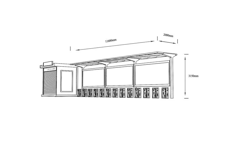 產(chǎn)品外觀 / PRODUCT DETAILS 產(chǎn)品信息 / PRODUCT INFO 【產(chǎn)品名稱】:公共自行車棚CP3-1【產(chǎn)品系列】:公共自行車棚 【產(chǎn)品型號(hào)】:CP3-1 【產(chǎn)品規(guī)格】:長11600mm 寬2000mm 高3150mm 【產(chǎn)品材質(zhì)】:熱鍍鋅鋼板 【使用年限】:10-15年 【詳情致電】:181-5189-0417、157-5170-8886 備注:產(chǎn)品可根據(jù)用戶需求選用材質(zhì)、顏色及配件,個(gè)性化定制。 產(chǎn)品尺寸 / PRODUCT SIZE 關(guān)于輝盛 / 為社會(huì)分擔(dān)責(zé)任,為客戶創(chuàng)造價(jià)值 宿遷輝盛廣告設(shè)備有限公司是一家集設(shè)計(jì)、研發(fā)、生產(chǎn)為一體的城市公共設(shè)施生產(chǎn)型企業(yè)。主要產(chǎn)品有:候車公交亭、公交站臺(tái)、閱報(bào)欄、路名牌、垃圾箱、燈箱等市政設(shè)施系列產(chǎn)品和工程配套設(shè)施系列產(chǎn)品,現(xiàn)有高級(jí)技師30多人,高級(jí)職稱設(shè)計(jì)人員10人,是一家具有自主開發(fā)和設(shè)計(jì)能力的以公交亭、智能公交為主導(dǎo)的綜合性城市公共設(shè)施制造企業(yè)。為了進(jìn)一步改善生產(chǎn)工藝,提高產(chǎn)品質(zhì)量,公司引進(jìn)了先進(jìn)生產(chǎn)設(shè)備,包括立臥式加工中心,工業(yè)涂裝流水線,CNC車床,線切割機(jī),大型數(shù)控板機(jī),數(shù)控折邊機(jī),數(shù)控沖孔機(jī)床,大型折彎機(jī)等。公司還專門成立了產(chǎn)品研發(fā)部門,現(xiàn)每年自主開發(fā)或應(yīng)客戶要求設(shè)計(jì)推出多款新產(chǎn)品。 榮譽(yù)資質(zhì) / ENTERPRISE HONOR