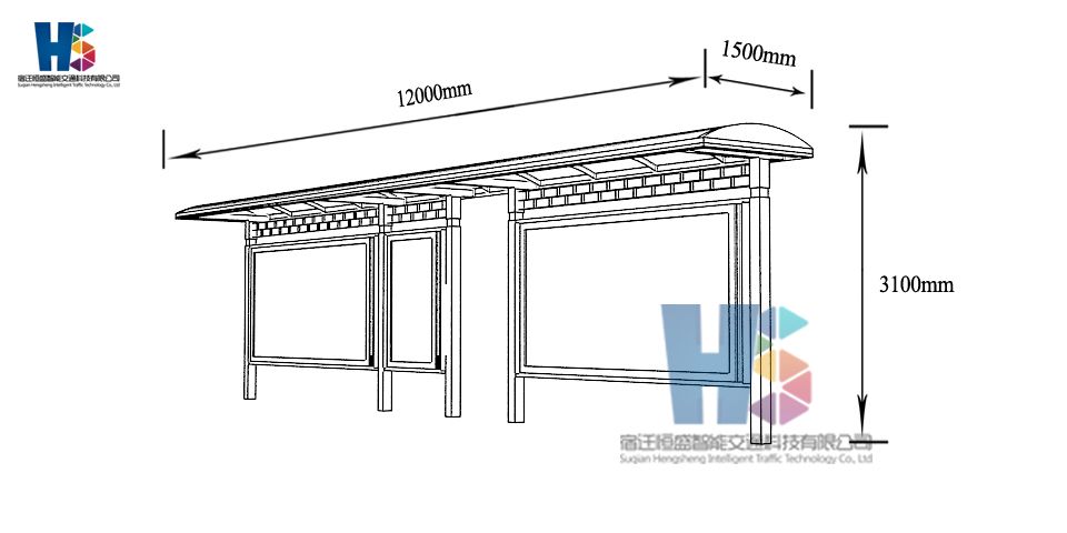 產(chǎn)品外觀 / PRODUCT DETAILS 產(chǎn)品信息 / PRODUCT INFO 【產(chǎn)品名稱】:鄉(xiāng)村風(fēng)采候車亭XC2 【產(chǎn)品系列】:鄉(xiāng)村風(fēng)采候車亭 【產(chǎn)品型號(hào)】:XC2 【產(chǎn)品規(guī)格】:長(zhǎng)10800mm 寬1700mm 高2900mm 【產(chǎn)品材質(zhì)】:熱鍍鋅鋼板 【使用年限】:10-15年 【詳情致電】:181-5189-0417、157-5170-8886 備注:產(chǎn)品可根據(jù)用戶需求選用材質(zhì)、顏色及配件,個(gè)性化定制。 1、表面采用靜電噴塑(氟碳烤漆/搪瓷處理) 2、頂棚采用100*100*1.5mm、100*150*2mm鍍鋅管,3mm鍍鋅板激光切割件、1.5mm鍍鋅板焊接骨架,鋪1mm鍍鋅板(10mm陽光板) 3、立柱采用150*150*3mm鍍鋅管 4、箱體采用1.5mm鍍鋅板折彎焊接成型,門框采用全玻鋁合金型材,視窗采用6mm鋼化玻璃 5、照明電器采用LED燈粒 產(chǎn)品尺寸 / PRODUCT SIZE 關(guān)于輝盛 / 為社會(huì)分擔(dān)責(zé)任,為客戶創(chuàng)造價(jià)值 宿遷輝盛廣告設(shè)備有限公司是一家集設(shè)計(jì)、研發(fā)、生產(chǎn)為一體的城市公共設(shè)施生產(chǎn)型企業(yè)。主要產(chǎn)品有:候車公交亭、公交站臺(tái)、閱報(bào)欄、路名牌、垃圾箱、燈箱等市政設(shè)施系列產(chǎn)品和工程配套設(shè)施系列產(chǎn)品,現(xiàn)有高級(jí)技師30多人,高級(jí)職稱設(shè)計(jì)人員10人,是一家具有自主開發(fā)和設(shè)計(jì)能力的以公交亭、智能公交為主導(dǎo)的綜合性城市公共設(shè)施制造企業(yè)。為了進(jìn)一步改善生產(chǎn)工藝,提高產(chǎn)品質(zhì)量,公司引進(jìn)了先進(jìn)生產(chǎn)設(shè)備,包括立臥式加工中心,工業(yè)涂裝流水線,CNC車床,線切割機(jī),大型數(shù)控板機(jī),數(shù)控折邊機(jī),數(shù)控沖孔機(jī)床,大型折彎機(jī)等。公司還專門成立了產(chǎn)品研發(fā)部門,現(xiàn)每年自主開發(fā)或應(yīng)客戶要求設(shè)計(jì)推出多款新產(chǎn)品。 榮譽(yù)資質(zhì) / ENTERPRISE HONOR