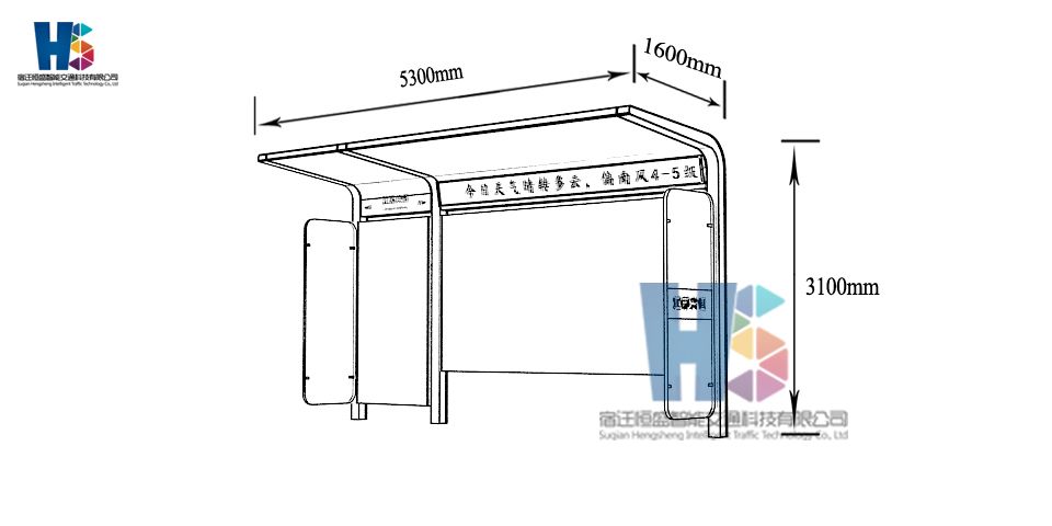 產(chǎn)品外觀 / PRODUCT DETAILS 產(chǎn)品信息 / PRODUCT INFO 【產(chǎn)品名稱】:鄉(xiāng)村風(fēng)采候車亭XC1 【產(chǎn)品系列】:鄉(xiāng)村風(fēng)采候車亭 【產(chǎn)品型號】:XC1 【產(chǎn)品規(guī)格】:長10800mm 寬1700mm 高2900mm 【產(chǎn)品材質(zhì)】:熱鍍鋅鋼板 【使用年限】:10-15年 【詳情致電】:181-5189-0417、157-5170-8886 備注:產(chǎn)品可根據(jù)用戶需求選用材質(zhì)、顏色及配件,個(gè)性化定制。 1、表面采用靜電噴塑(氟碳烤漆/搪瓷處理) 2、頂棚采用100*100*1.5mm、100*150*2mm鍍鋅管,3mm鍍鋅板激光切割件、1.5mm鍍鋅板焊接骨架,鋪1mm鍍鋅板(10mm陽光板) 3、立柱采用150*150*3mm鍍鋅管 4、箱體采用1.5mm鍍鋅板折彎焊接成型,門框采用全玻鋁合金型材,視窗采用6mm鋼化玻璃 5、照明電器采用LED燈粒 產(chǎn)品尺寸 / PRODUCT SIZE 關(guān)于輝盛 / 為社會分擔(dān)責(zé)任,為客戶創(chuàng)造價(jià)值 宿遷輝盛廣告設(shè)備有限公司是一家集設(shè)計(jì)、研發(fā)、生產(chǎn)為一體的城市公共設(shè)施生產(chǎn)型企業(yè)。主要產(chǎn)品有:候車公交亭、公交站臺、閱報(bào)欄、路名牌、垃圾箱、燈箱等市政設(shè)施系列產(chǎn)品和工程配套設(shè)施系列產(chǎn)品,現(xiàn)有高級技師30多人,高級職稱設(shè)計(jì)人員10人,是一家具有自主開發(fā)和設(shè)計(jì)能力的以公交亭、智能公交為主導(dǎo)的綜合性城市公共設(shè)施制造企業(yè)。為了進(jìn)一步改善生產(chǎn)工藝,提高產(chǎn)品質(zhì)量,公司引進(jìn)了先進(jìn)生產(chǎn)設(shè)備,包括立臥式加工中心,工業(yè)涂裝流水線,CNC車床,線切割機(jī),大型數(shù)控板機(jī),數(shù)控折邊機(jī),數(shù)控沖孔機(jī)床,大型折彎機(jī)等。公司還專門成立了產(chǎn)品研發(fā)部門,現(xiàn)每年自主開發(fā)或應(yīng)客戶要求設(shè)計(jì)推出多款新產(chǎn)品。 榮譽(yù)資質(zhì) / ENTERPRISE HONOR