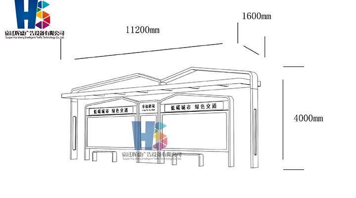 產(chǎn)品外觀 / PRODUCT DETAILS 產(chǎn)品信息 / PRODUCT INFO 【產(chǎn)品名稱】:新款候車亭HS51 【產(chǎn)品系列】:新款候車亭 【產(chǎn)品型號(hào)】:HS51 【產(chǎn)品規(guī)格】:長(zhǎng)112000mm 寬1600mm 高4000mm 【產(chǎn)品材質(zhì)】:熱鍍鋅鋼板 【使用年限】:10-15年 【詳情致電】:181-5189-0417、157-5170-8886 備注:產(chǎn)品可根據(jù)用戶需求選用材質(zhì)、顏色及配件,個(gè)性化定制。 1、表面采用靜電噴塑(氟碳烤漆/搪瓷處理) 2、頂棚采用100*100*1.5mm、100*150*2mm鍍鋅管,3mm鍍鋅板激光切割件、1.5mm鍍鋅板焊接骨架,鋪1mm鍍鋅板(10mm陽(yáng)光板) 3、立柱采用150*150*3mm鍍鋅管 4、箱體采用1.5mm鍍鋅板折彎焊接成型,門框采用全玻鋁合金型材,視窗采用6mm鋼化玻璃 5、照明電器采用LED燈粒 產(chǎn)品尺寸 / PRODUCT SIZE 關(guān)于輝盛 / 為社會(huì)分擔(dān)責(zé)任,為客戶創(chuàng)造價(jià)值 宿遷輝盛廣告設(shè)備有限公司是一家集設(shè)計(jì)、研發(fā)、生產(chǎn)為一體的城市公共設(shè)施生產(chǎn)型企業(yè)。主要產(chǎn)品有:候車公交亭、公交站臺(tái)、閱報(bào)欄、路名牌、垃圾箱、燈箱等市政設(shè)施系列產(chǎn)品和工程配套設(shè)施系列產(chǎn)品,現(xiàn)有高級(jí)技師30多人,高級(jí)職稱設(shè)計(jì)人員10人,是一家具有自主開發(fā)和設(shè)計(jì)能力的以公交亭、智能公交為主導(dǎo)的綜合性城市公共設(shè)施制造企業(yè)。為了進(jìn)一步改善生產(chǎn)工藝,提高產(chǎn)品質(zhì)量,公司引進(jìn)了先進(jìn)生產(chǎn)設(shè)備,包括立臥式加工中心,工業(yè)涂裝流水線,CNC車床,線切割機(jī),大型數(shù)控板機(jī),數(shù)控折邊機(jī),數(shù)控沖孔機(jī)床,大型折彎?rùn)C(jī)等。公司還專門成立了產(chǎn)品研發(fā)部門,現(xiàn)每年自主開發(fā)或應(yīng)客戶要求設(shè)計(jì)推出多款新產(chǎn)品。 榮譽(yù)資質(zhì) / ENTERPRISE HONOR