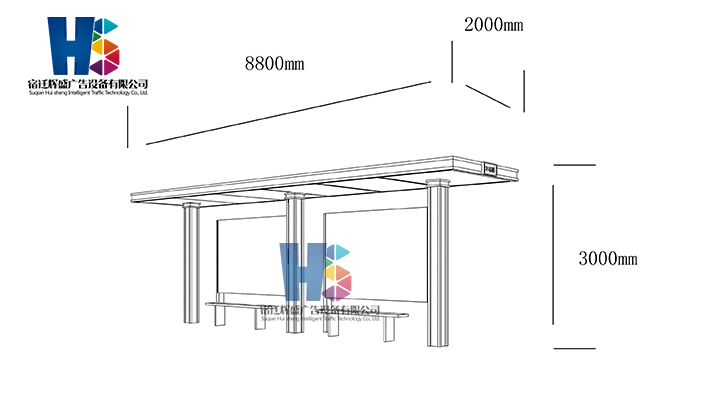 產(chǎn)品外觀 / PRODUCT DETAILS 產(chǎn)品信息 / PRODUCT INFO 【產(chǎn)品名稱】:新款候車(chē)亭HS24 【產(chǎn)品系列】:新款候車(chē)亭 【產(chǎn)品型號(hào)】:HS24 【產(chǎn)品規(guī)格】:長(zhǎng)8800mm 寬2000mm 高3000mm 【產(chǎn)品材質(zhì)】:熱鍍鋅鋼板 【使用年限】:10-15年 【詳情致電】:181-5189-0417、157-5170-8886 備注:產(chǎn)品可根據(jù)用戶需求選用材質(zhì)、顏色及配件,個(gè)性化定制。 1、表面采用靜電噴塑(氟碳烤漆/搪瓷處理) 2、頂棚采用100*100*1.5mm、100*150*2mm鍍鋅管,3mm鍍鋅板激光切割件、1.5mm鍍鋅板焊接骨架,鋪1mm鍍鋅板(10mm陽(yáng)光板) 3、立柱采用150*150*3mm鍍鋅管 4、箱體采用1.5mm鍍鋅板折彎焊接成型,門(mén)框采用全玻鋁合金型材,視窗采用6mm鋼化玻璃 5、照明電器采用LED燈粒 產(chǎn)品尺寸 / PRODUCT SIZE 關(guān)于輝盛 / 為社會(huì)分擔(dān)責(zé)任,為客戶創(chuàng)造價(jià)值 宿遷輝盛廣告設(shè)備有限公司是一家集設(shè)計(jì)、研發(fā)、生產(chǎn)為一體的城市公共設(shè)施生產(chǎn)型企業(yè)。主要產(chǎn)品有:候車(chē)公交亭、公交站臺(tái)、閱報(bào)欄、路名牌、垃圾箱、燈箱等市政設(shè)施系列產(chǎn)品和工程配套設(shè)施系列產(chǎn)品,現(xiàn)有高級(jí)技師30多人,高級(jí)職稱設(shè)計(jì)人員10人,是一家具有自主開(kāi)發(fā)和設(shè)計(jì)能力的以公交亭、智能公交為主導(dǎo)的綜合性城市公共設(shè)施制造企業(yè)。為了進(jìn)一步改善生產(chǎn)工藝,提高產(chǎn)品質(zhì)量,公司引進(jìn)了先進(jìn)生產(chǎn)設(shè)備,包括立臥式加工中心,工業(yè)涂裝流水線,CNC車(chē)床,線切割機(jī),大型數(shù)控板機(jī),數(shù)控折邊機(jī),數(shù)控沖孔機(jī)床,大型折彎?rùn)C(jī)等。公司還專門(mén)成立了產(chǎn)品研發(fā)部門(mén),現(xiàn)每年自主開(kāi)發(fā)或應(yīng)客戶要求設(shè)計(jì)推出多款新產(chǎn)品。 榮譽(yù)資質(zhì) / ENTERPRISE HONOR